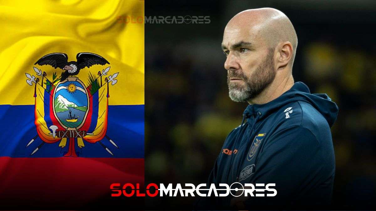 Composición gráfica de Solomarcadores que muestra al delantero ecuatoriano Jordy Caicedo en actitud eufórica y al entrenador de la Selección de Ecuador, Sebastián Beccacece, destacando su buen momento en Argentina.